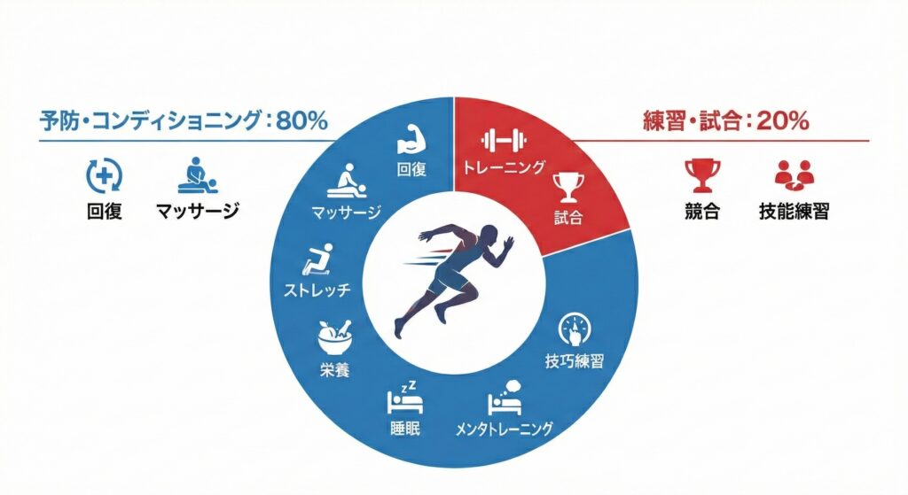 トップアスリートは、練習時間の8割を「予防とコンディショニング」に費やしています。